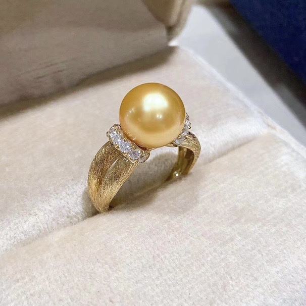 Bague de mode en argent 925 importé exquis avec incrustation de perles d'or naturel, finition givrée, livrée avec boîte cadeau