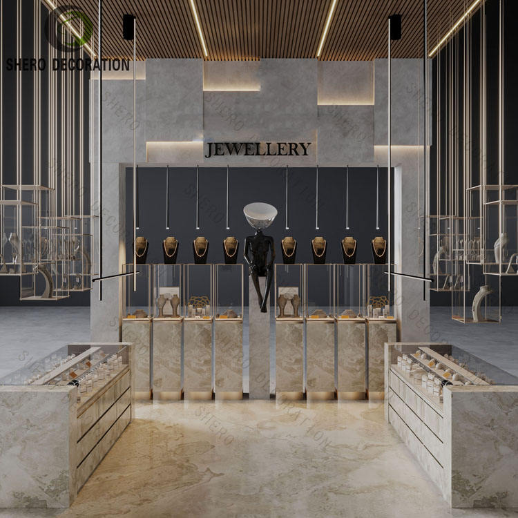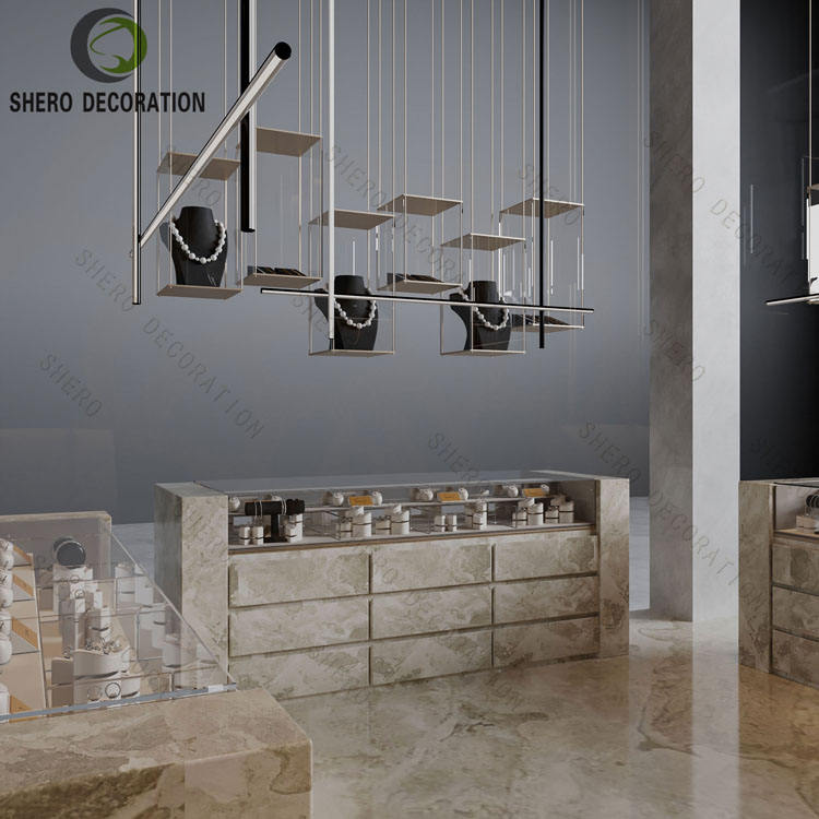 Vitrine de bijoux en verre marbré durable et personnalisée pour vitrine de bijoux