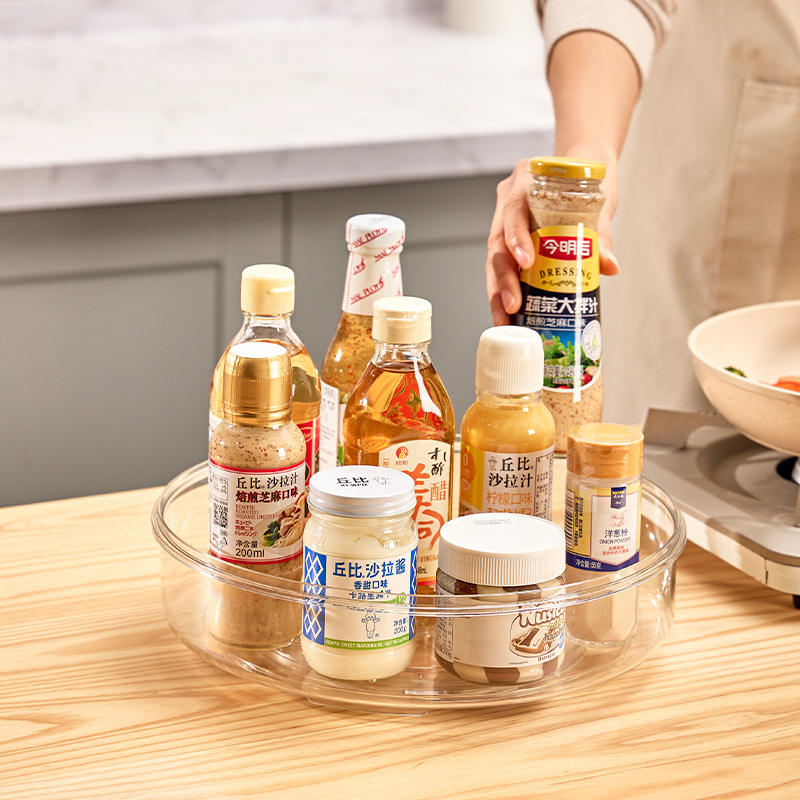 Étagère à épices rotative de cuisine exquise Transparent rond PET et boîte de rangement d'assaisonnement en plastique porte-accessoires