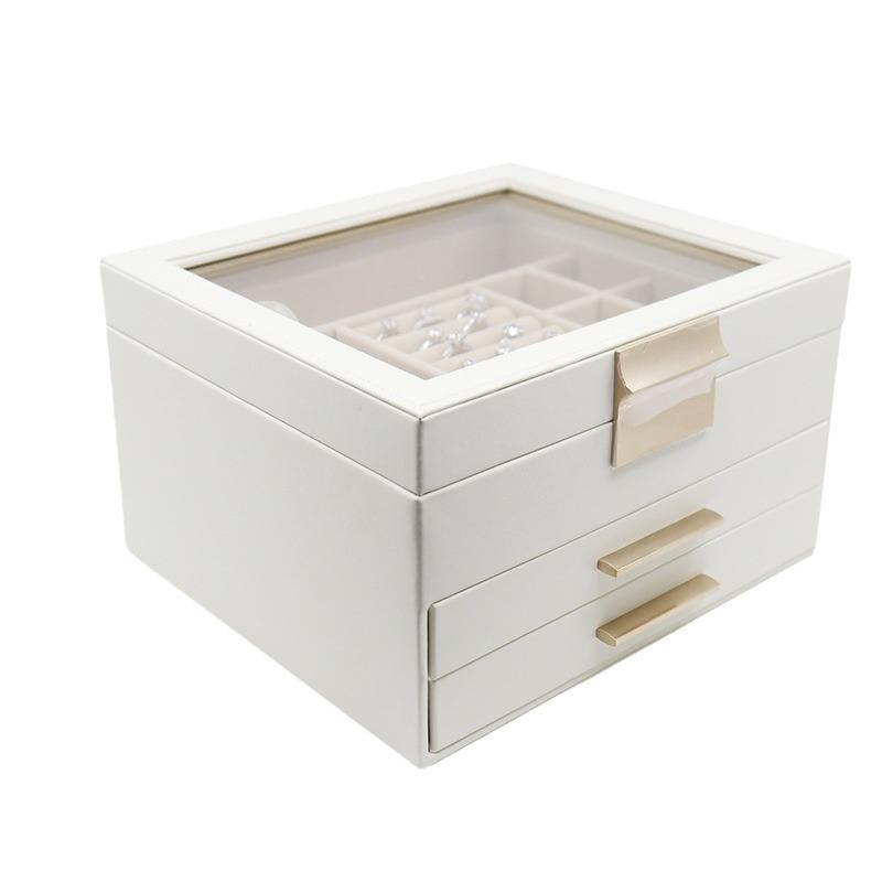 Grande boîte de rangement de bijoux à trois couches exquise Solution de stockage à domicile pour colliers et boucles d'oreilles en cuir et velours