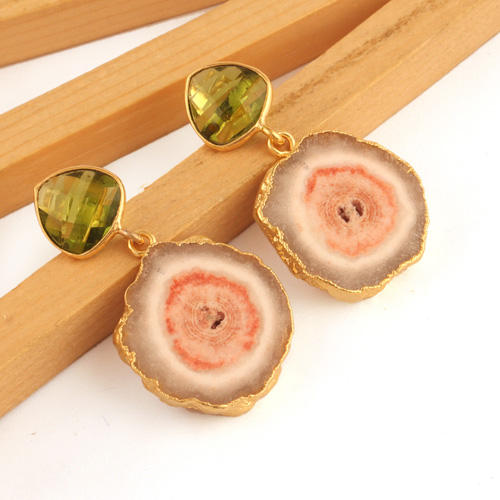 Boucles d'oreilles pendantes en plaqué or pour filles, bijoux personnalisés, quartz solaire orange naturel et quartz péridot à facettes