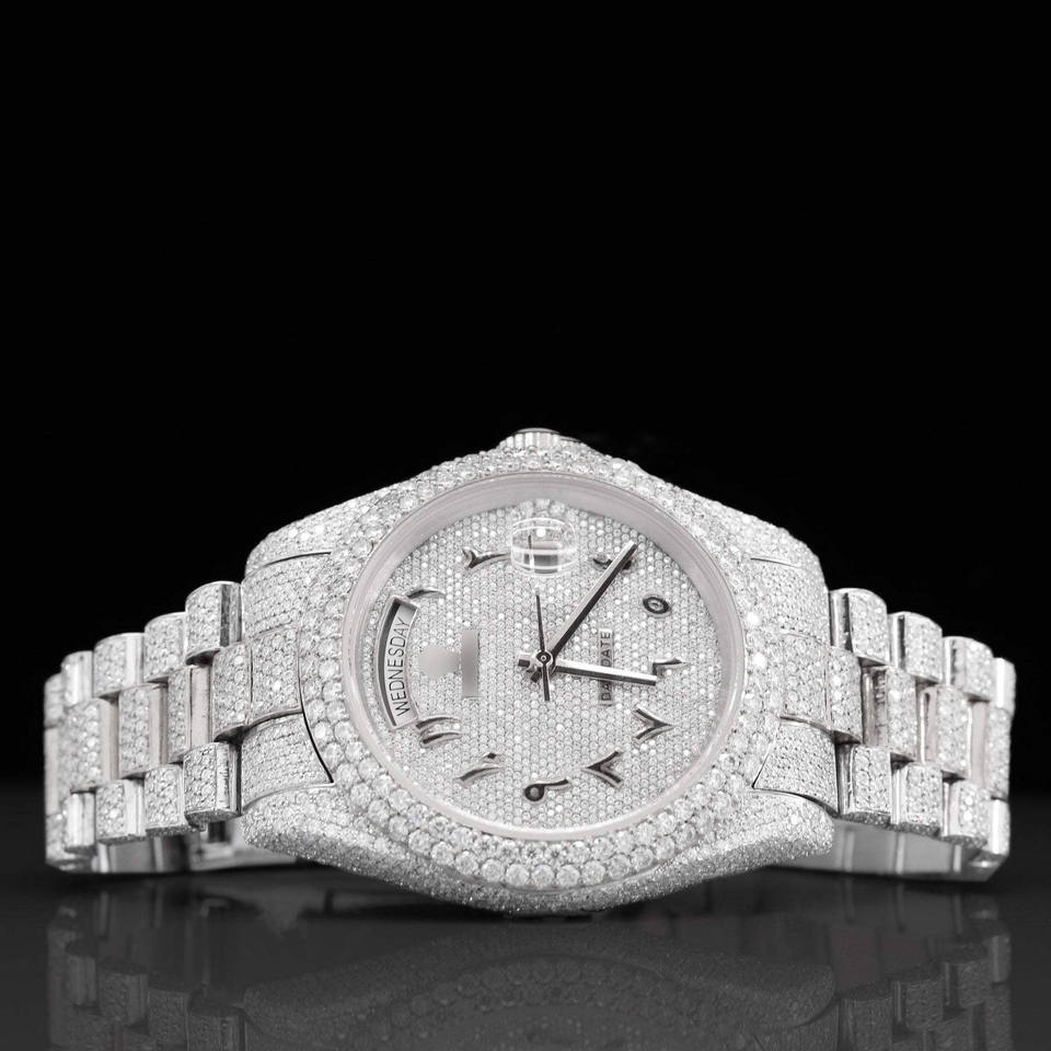 Montre automatique de luxe en acier inoxydable pour hommes chiffres arabes Moissanite aspect diamant étanche-mécanique entièrement glacée