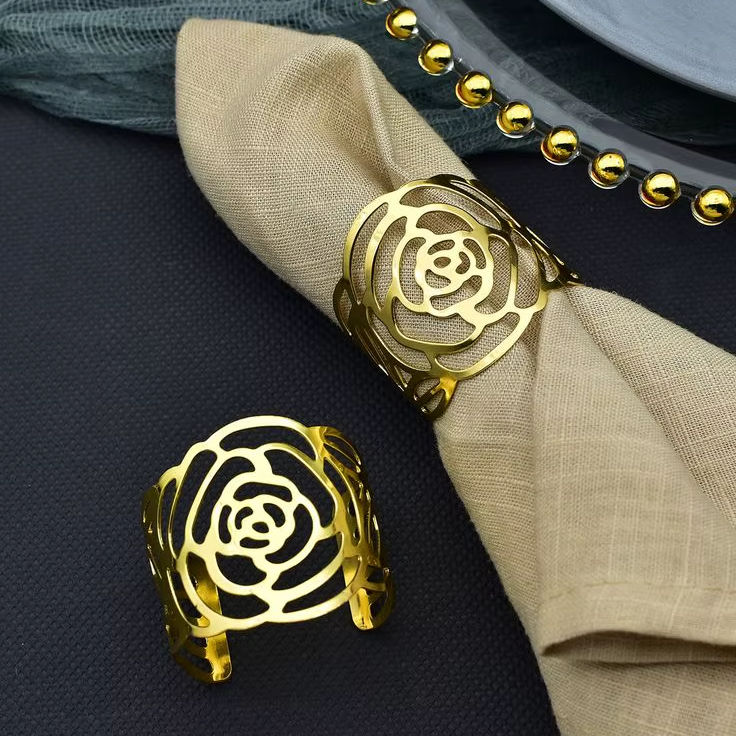 Anneau de serviette en métal exquis ajoutant une touche de luxe aux expériences culinaires lors des célébrations, des rassemblements familiaux et des mariages