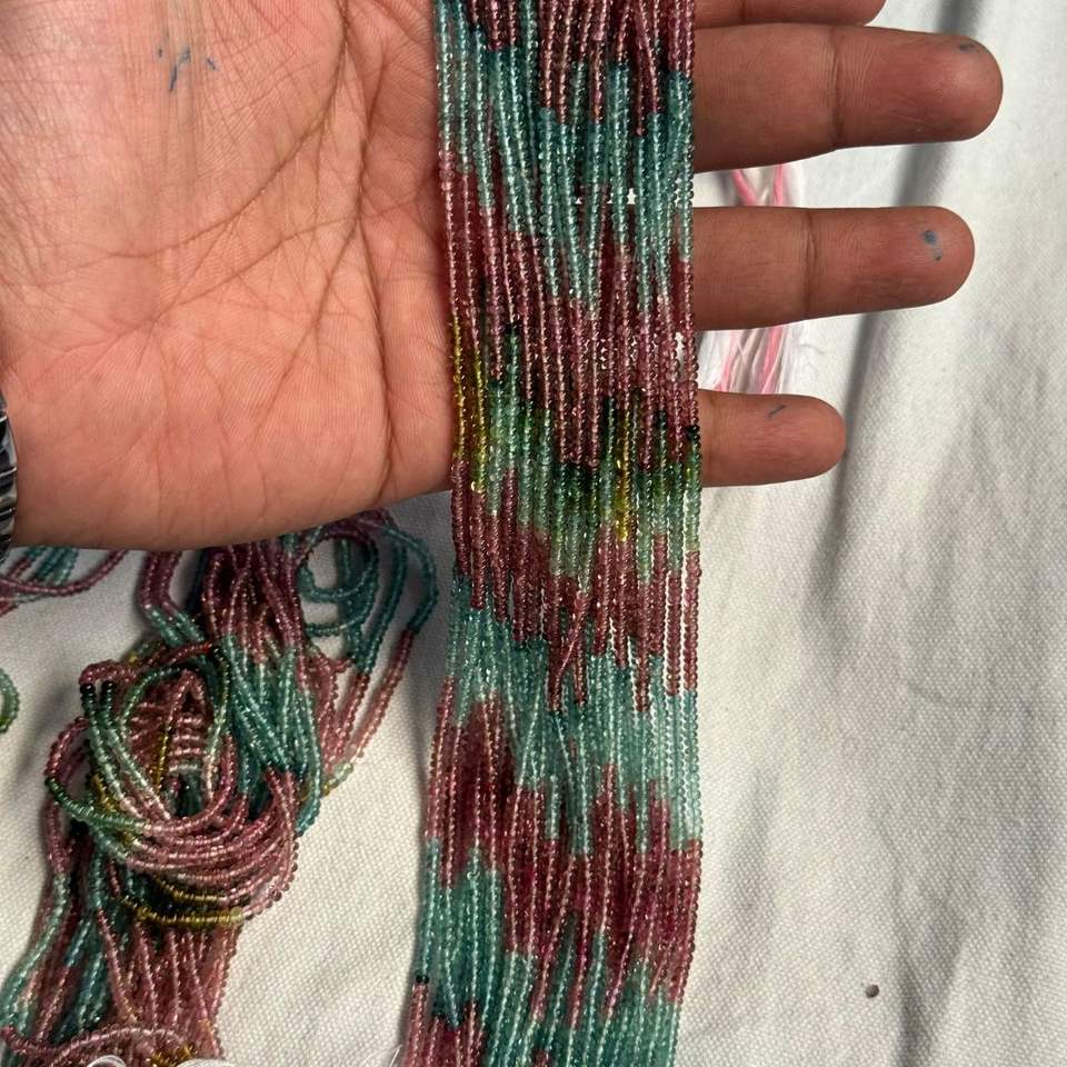 High Quality Natural Green Multi Tourmaline 2.5mm to 3.5mm Smooth Rondelle Beads for Jewelry Making