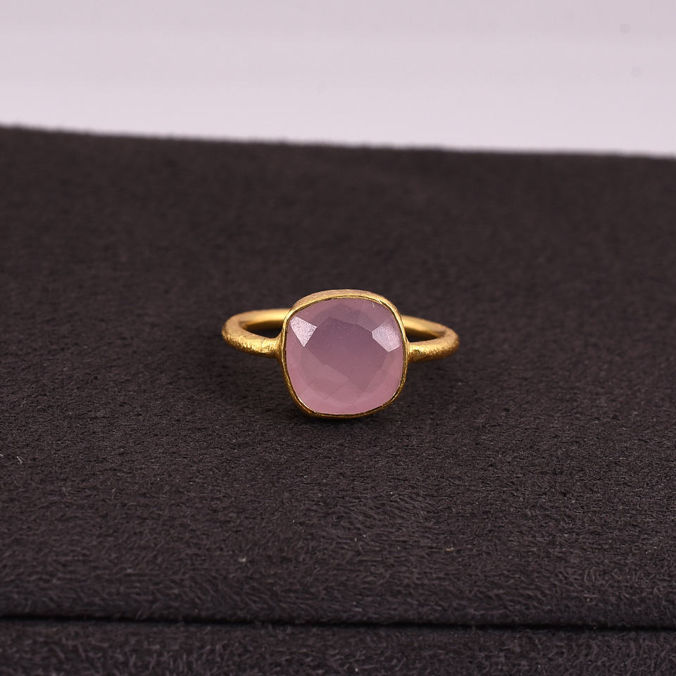 Product name:Rose Chalcedony Silver Texture Ring