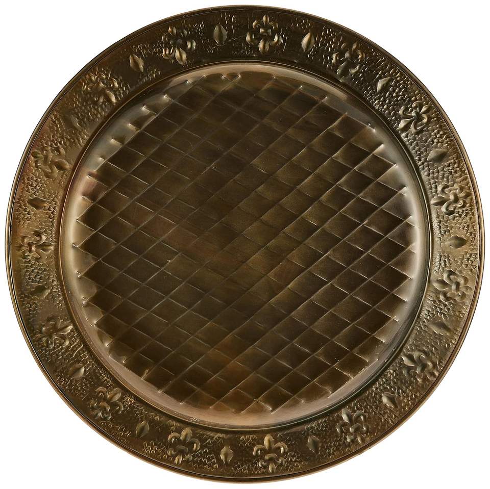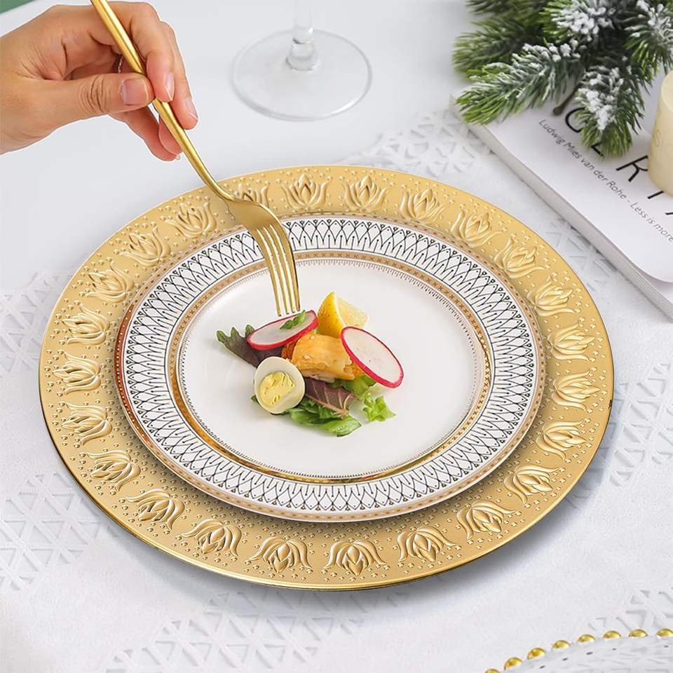 Assiette de Présentation en Aluminium Or Rose Exquise, Gravures Florales Délicates, Finition Polie, Style Méditerranéen, Logo Personnalisable pour