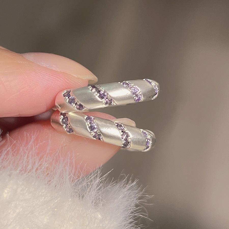 Boucles d'oreilles exquises en argent sterling S925, micro-incrustées de pierres précieuses violettes fantaisie, fermoirs d'oreille en strass lavande givré, design à clous