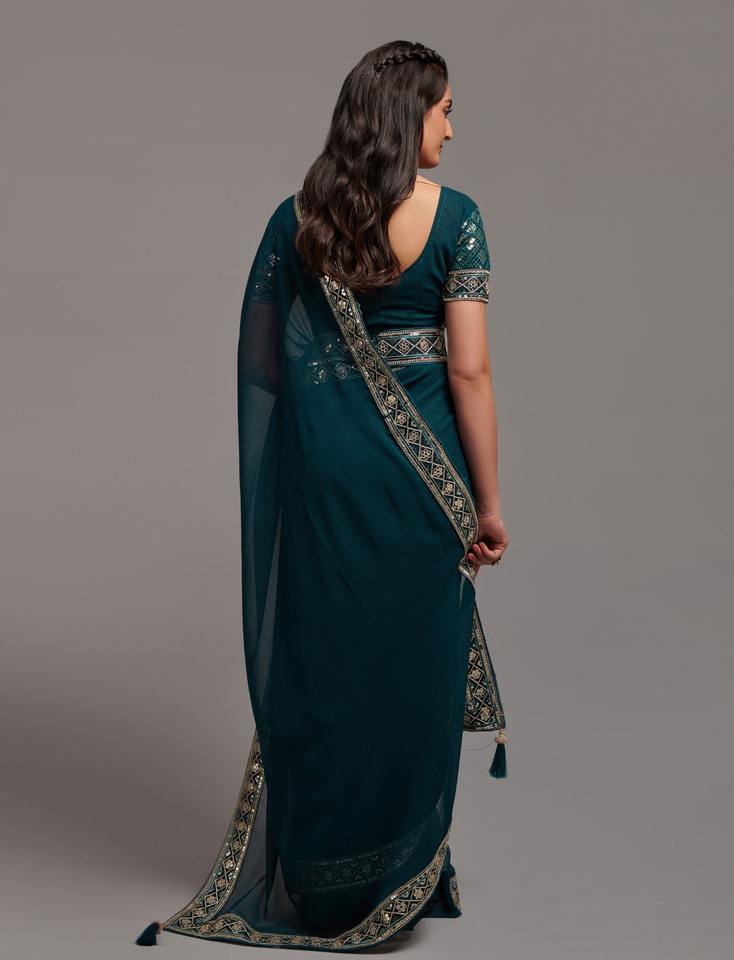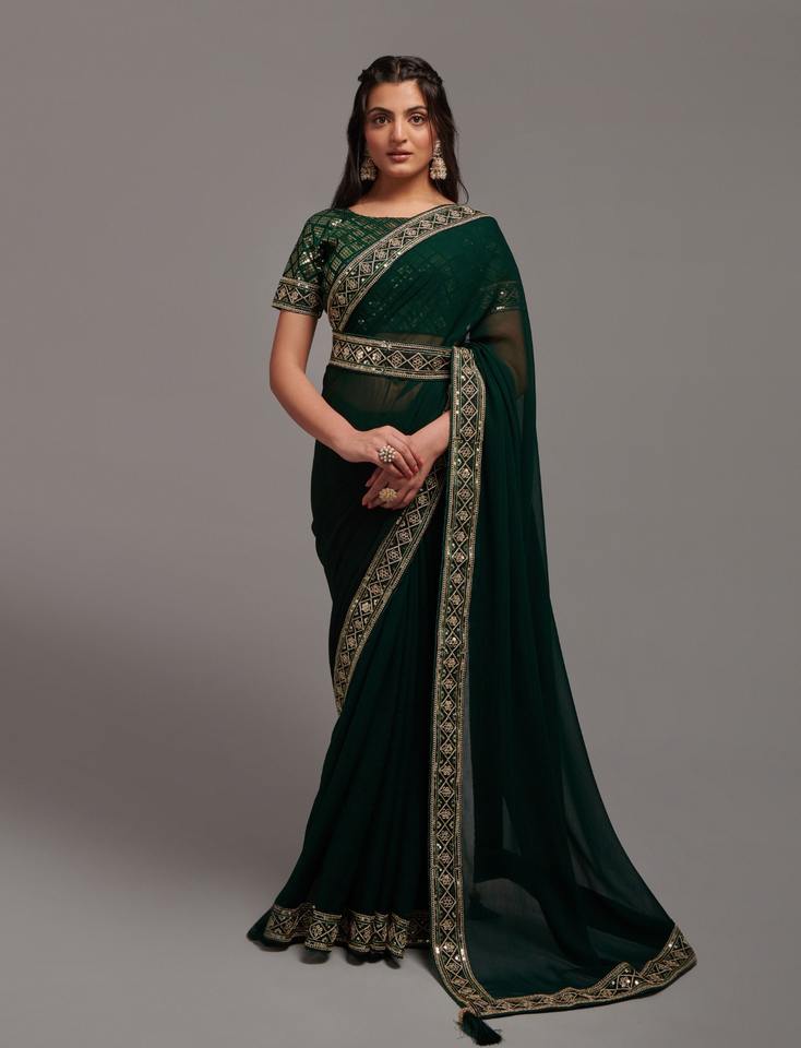 Exquis Sequin Broderie Georgette Designer Saree avec Chemisier Tendance Traditionnel Indien Ethnique Porter Incroyable Nouvelle Arrivée
