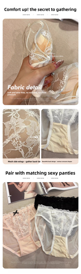 Exquis Sexy dentelle avant boucle Bikini sous-vêtements 3/4 tasse solide respirant petite poitrine rassemblement pull-up grand soutien-gorge sans fil