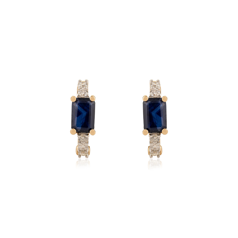 Boucles d'oreilles fines en or jaune massif K14 avec saphir bleu et diamant taille octogone, design simple et exquis, pour un usage quotidien, fournisseur de bijoux