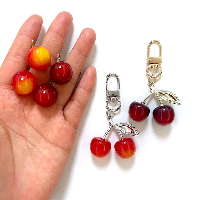 Porte-clés pendentif cerise miniature exquis, nouvelle simulation stéréoscopique, métal combiné, dégradé, pendentif de voiture, sac avec design élégant
