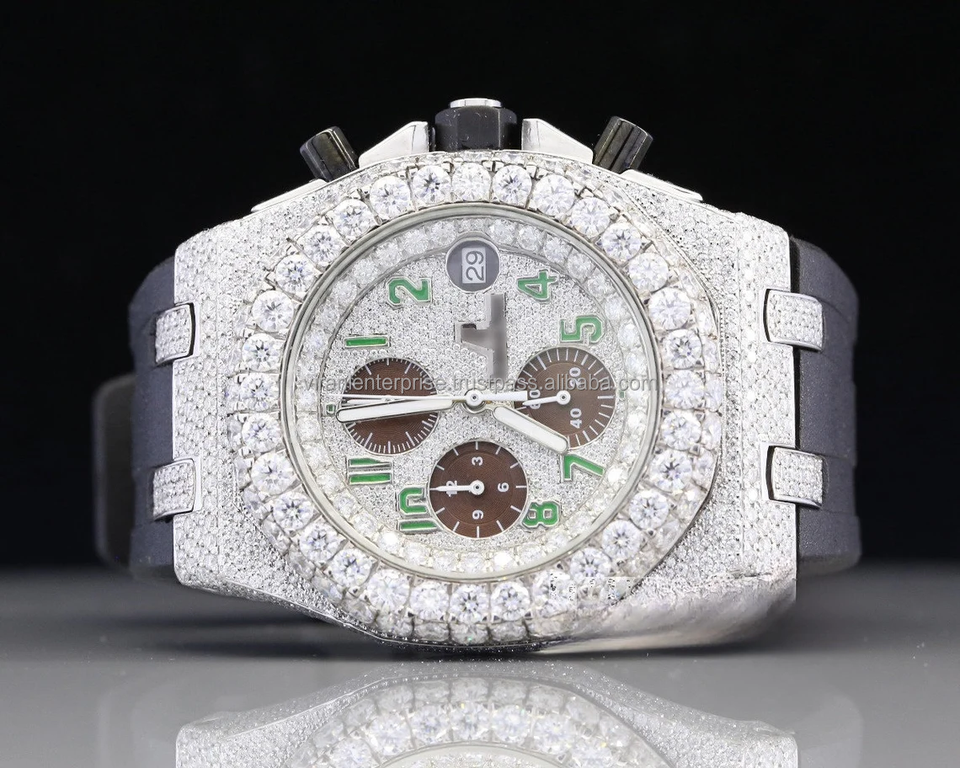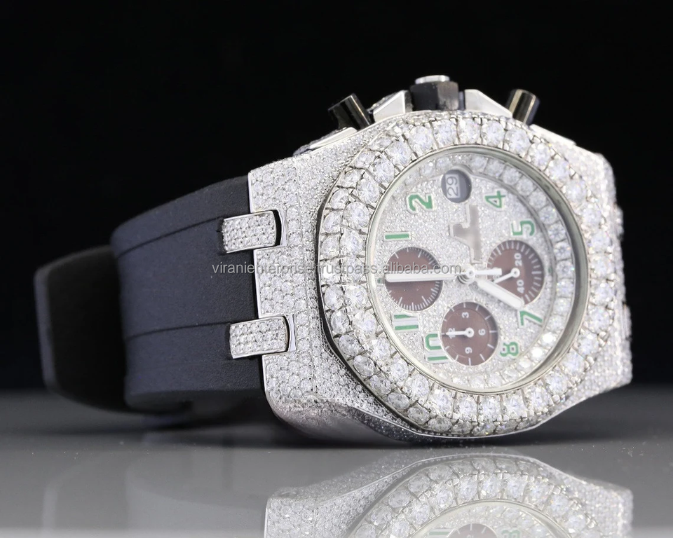 Montre de luxe en acier inoxydable, carrée, analogique, sertie de diamants Moissanite, pour l'élégance et le style