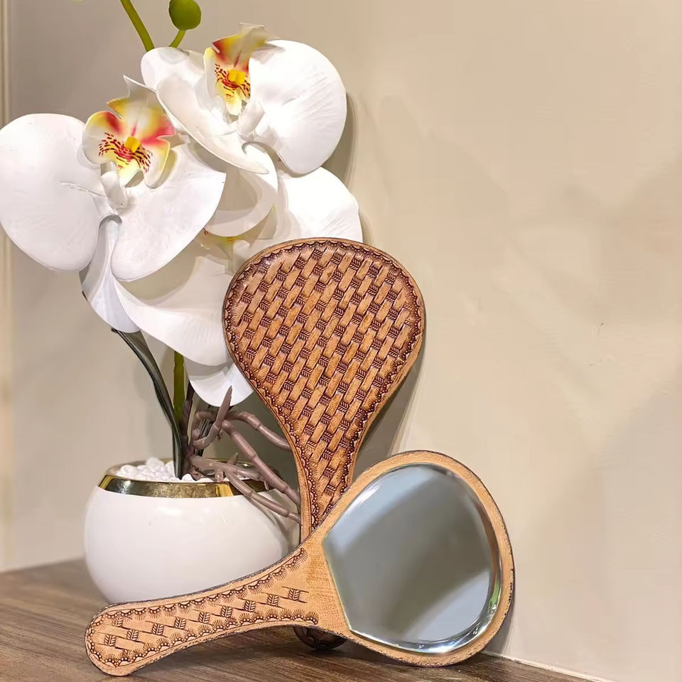 Classic Vintage Tooled Leather Handheld Mirror