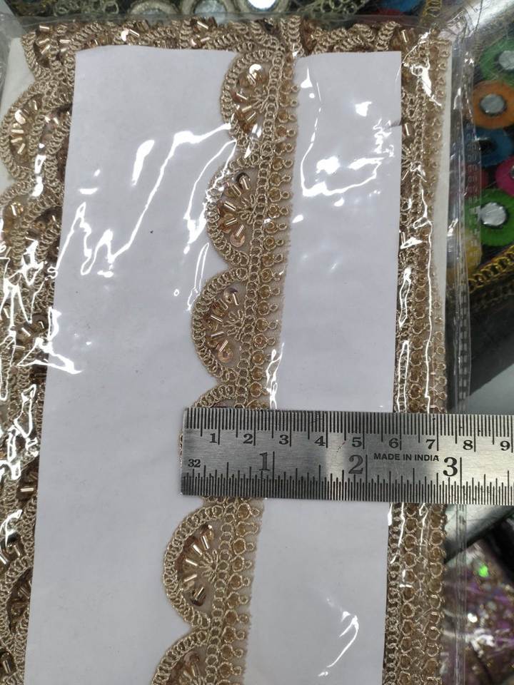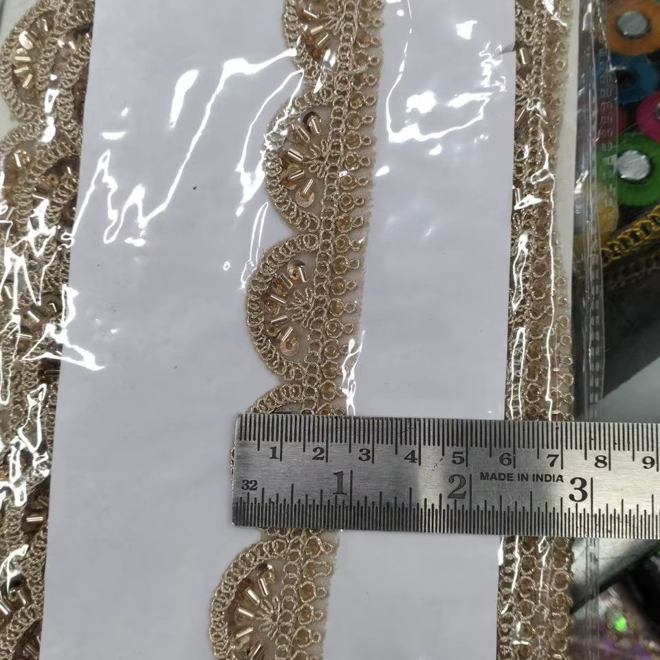 Bordure en dentelle brodée florale multicolore traditionnelle exquise avec perles, fil métallique Zari et perles scintillantes 100% polyester