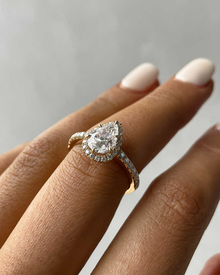 Exquis à la mode 18K or pur luxueux bagues de fiançailles bijoux fins poire brillant laboratoire cultivé Solitaire bague de mariage pour les femmes