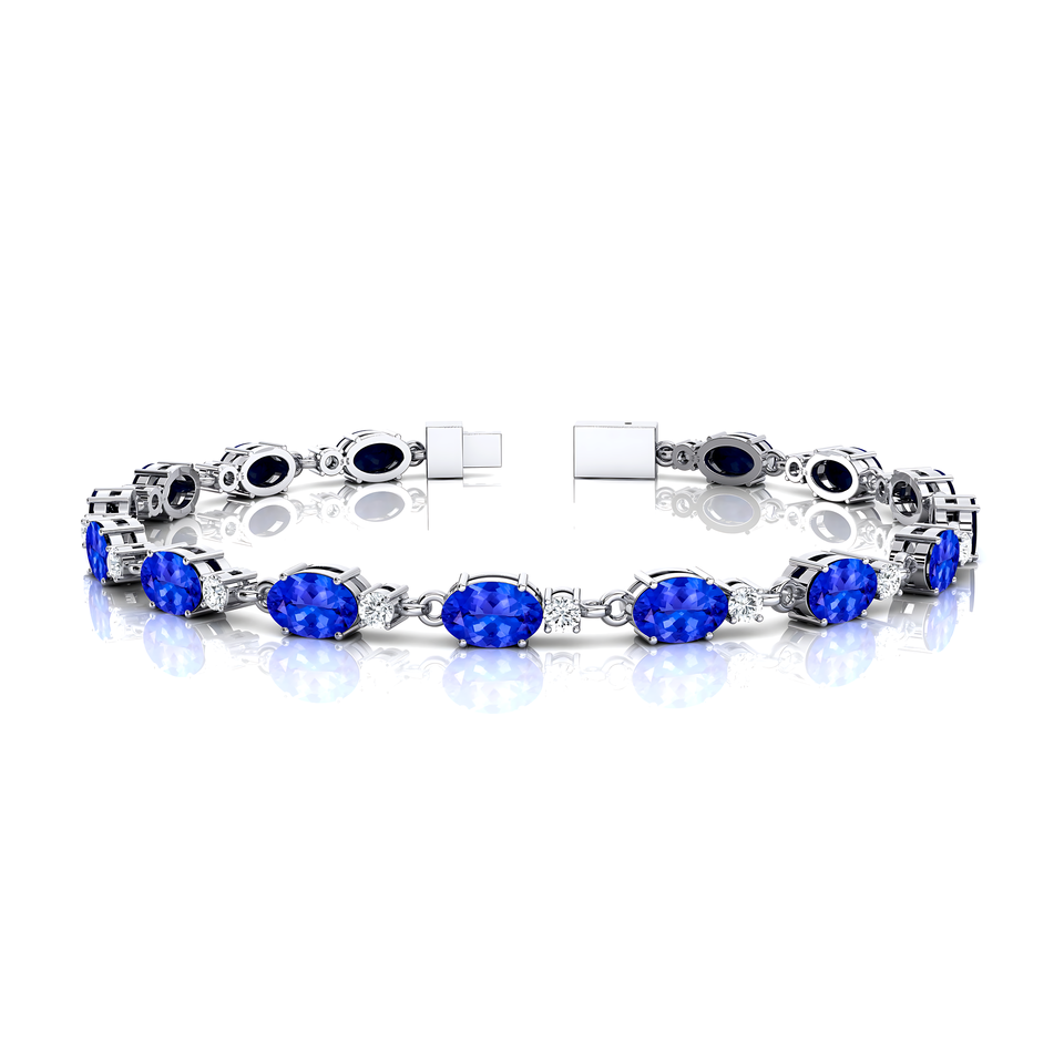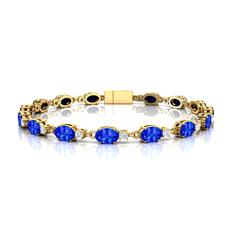 Conception à la mode exquise or 14 carats 2.2mm taille ovale tanzanite naturelle avec de vrais diamants délicats bracelets de tennis élégants en gros