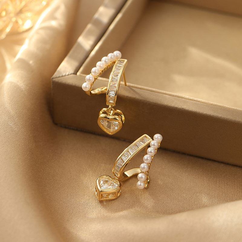Boucles d'oreilles à clous en cuivre géométriques tendance et exquises, imitation perle, design élégant, cadeau