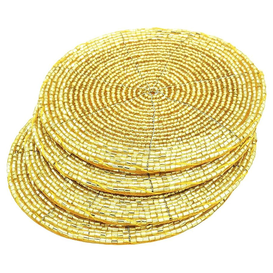 Sous-verre perlé en forme de coeur unique exquis ensemble de dessous de verre de perles brodées à la main de couleur dorée protégez vos boissons de la pierre de poussière