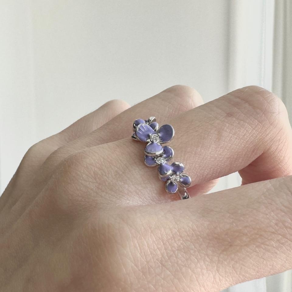 Exquisite Vintage Purple Wisteria Flower Glazed S925 Sterling Silver Drop Ring for Women Sweet Versatile Accessory