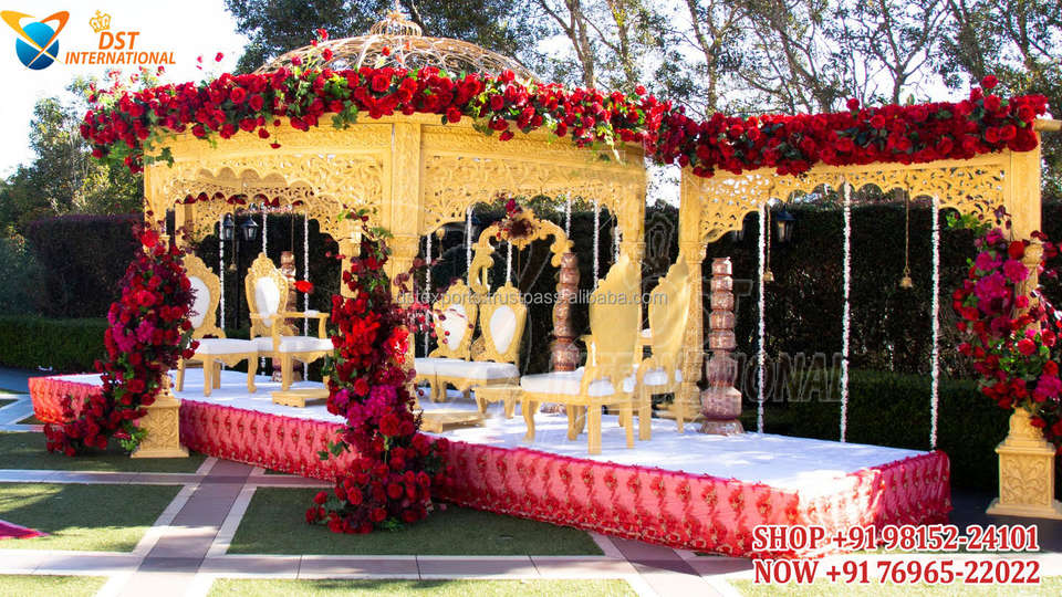 Mandap de mariage exquis ensemble de Mandap sculpté en fibre moderne fabricant de Mandap de mariage indien tendance meilleur ensemble de mariage Mandap USA