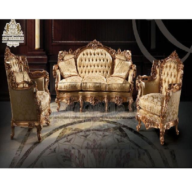 Ensemble de canapés de salon en bois massif sculpté, meubles de salon en or de haute qualité, fabriqué à la main