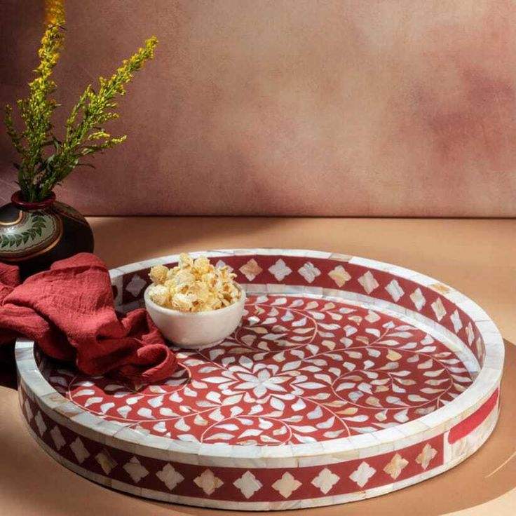 Plateau en bois MOP artisanal et écologique, exquis, pour servir des chocolats et des plats salés, avec des embellissements artistiques en perles