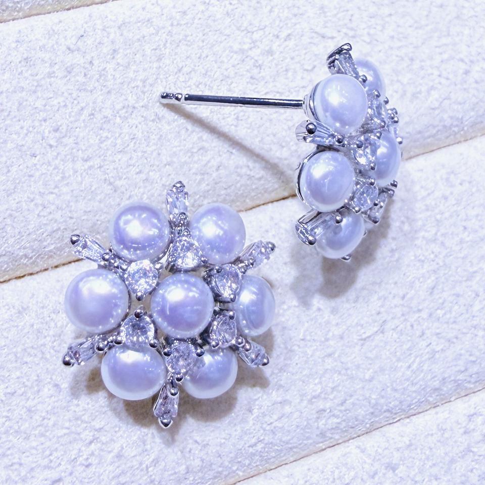 Exquisite Zhuji Manufacturer's Multi-Beaded Snowflake Earrings Freshwater Pearl Crystal Jewelry Wholesale Original Earrings