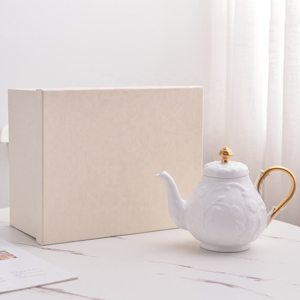 Service à thé en porcelaine fine avec motifs en relief exquis, respectueux de l'environnement, pour les cafés et les hôtels