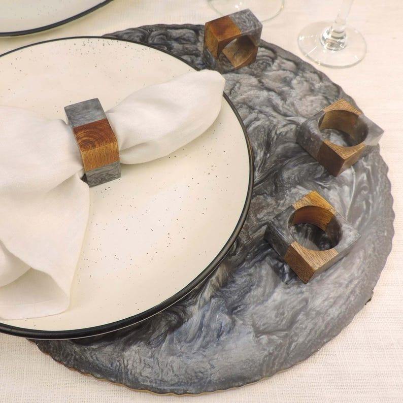 Exquisite resin napkin rings with traditional carving and fine art styling for elegant dining environments