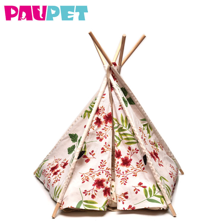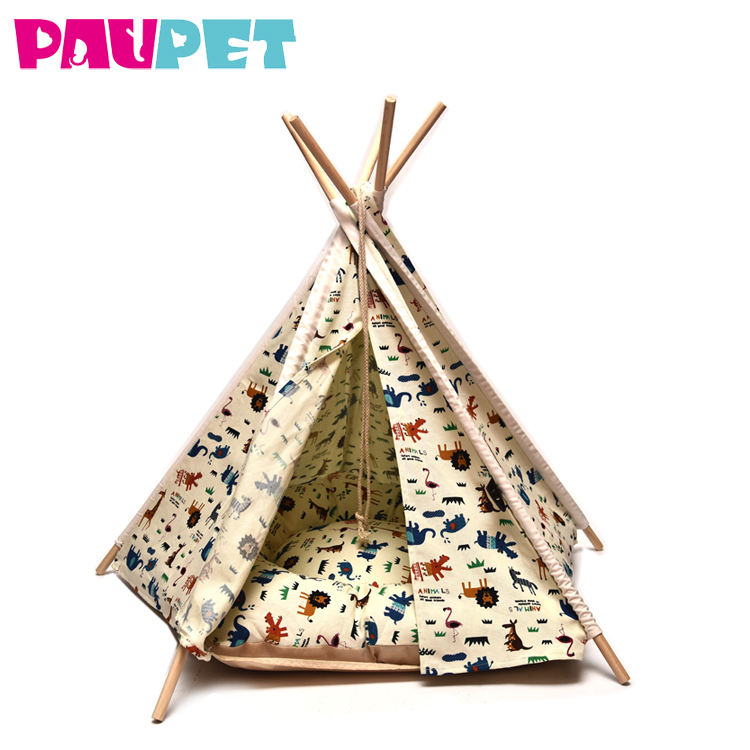 Extérieur Pliable Design De Mode Coton Toile Tissu Animaux Fournitures Chaud Doux Portable Tipi Lit Pour Animaux De Compagnie Tentes Maisons