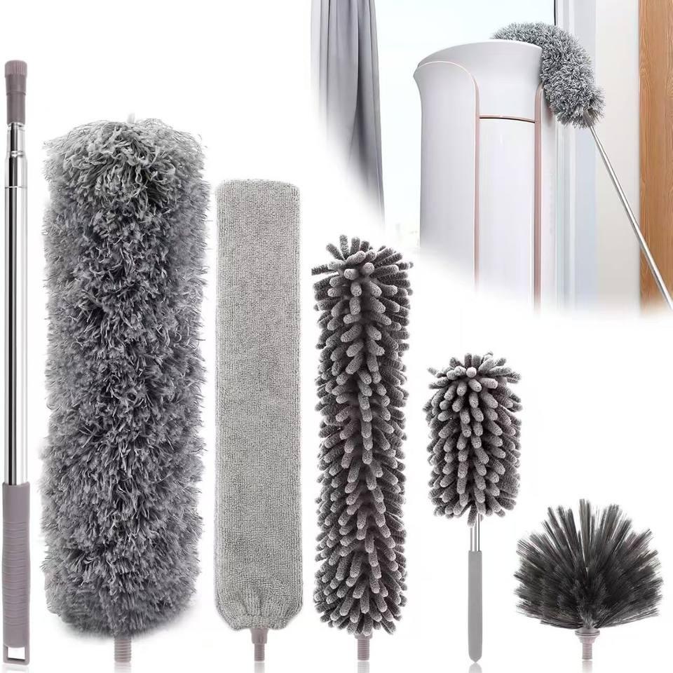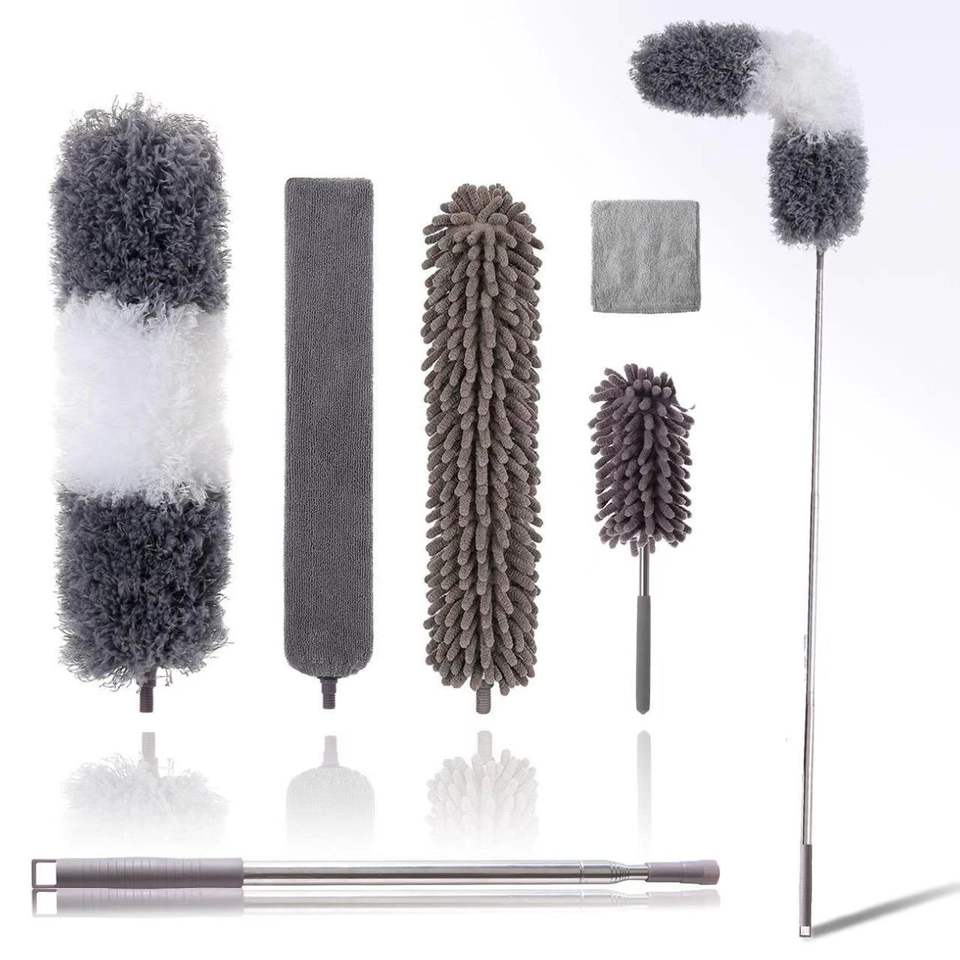 Brosse à poussière télescopique extensible pour nettoyer les sols, plafonds, ordinateurs, téléviseurs, toiles d'araignées et les saletés dans les interstices