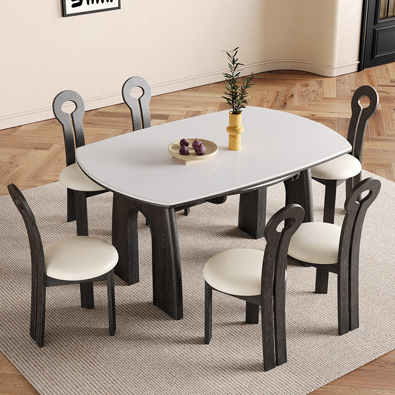 Table à manger ovale extensible avec structure en bois massif pour salle à manger, usage familial