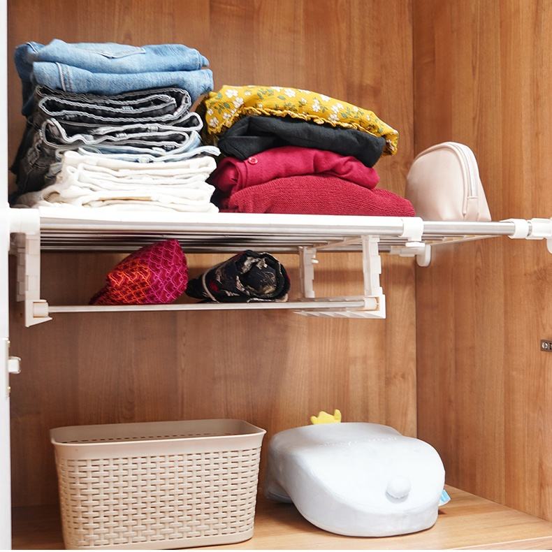 Étagère télescopique extensible en acier inoxydable vêtements placard organisateur support avec capacité de suspension garde-robe couche support de stockage