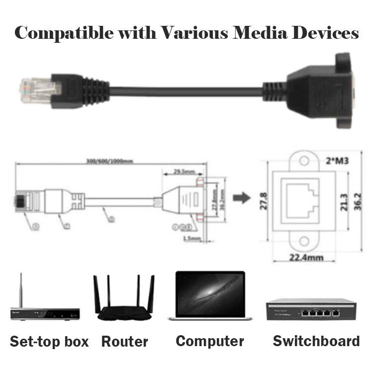 Extension de réseau LAN câble de raccordement câble de raccordement RJ45 mâle à RJ45 femelle noir PVC Poly sac réseau Cat 8 câble