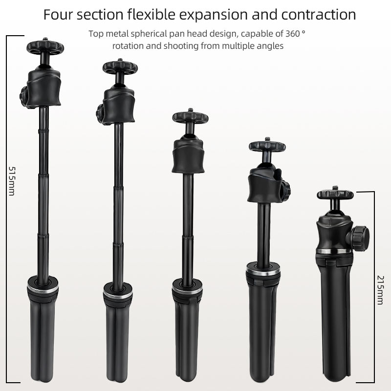 Perche télescopique en alliage d'aluminium avec mini trépied et poignée pour appareil photo et smartphone