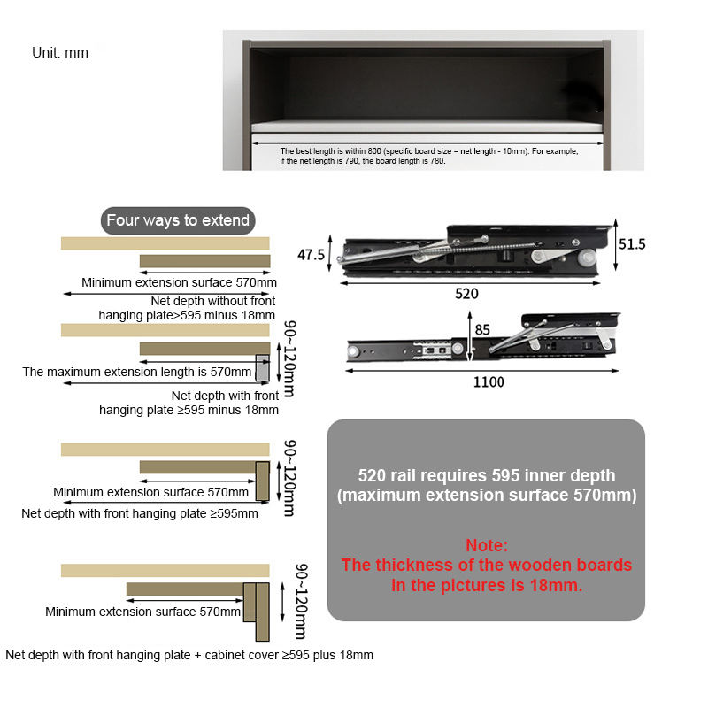 Installation facile, Réglable, Heavy Duty, Silencieux, Extension complète, Fermer doux, À fermeture automatique