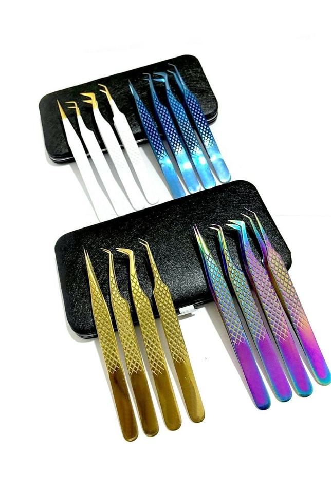 Pince à cils en acier inoxydable revêtu de titane Pince à cils à pointe en fibre multi-extension avec embouts pointus