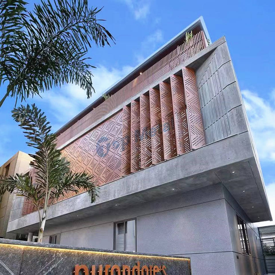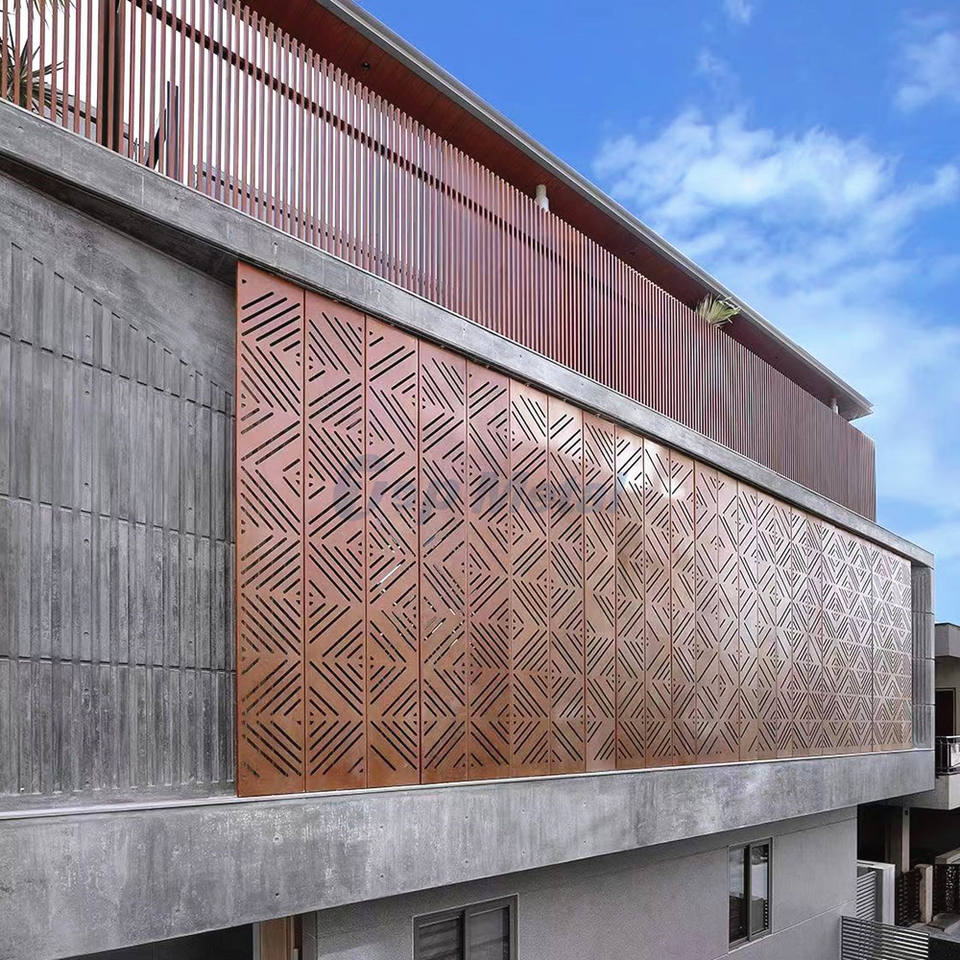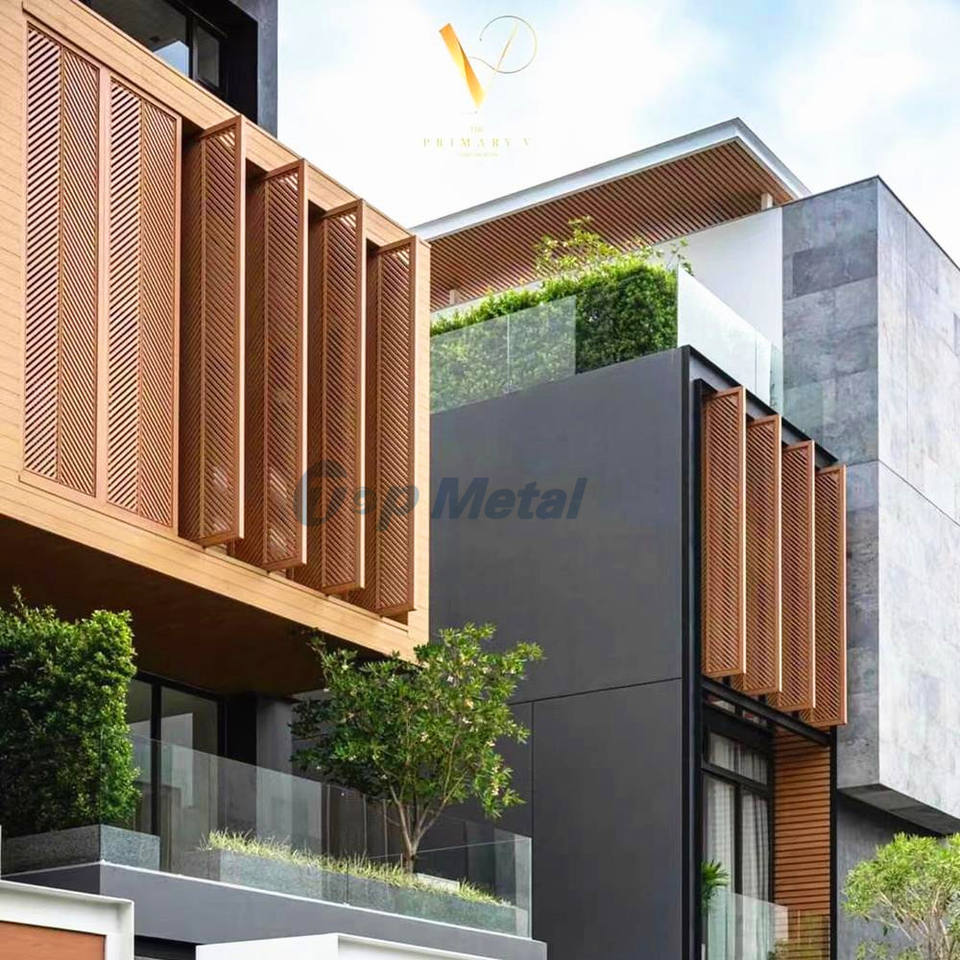 Revêtement extérieur, façade, écran mural coulissant en métal, persienne en aluminium