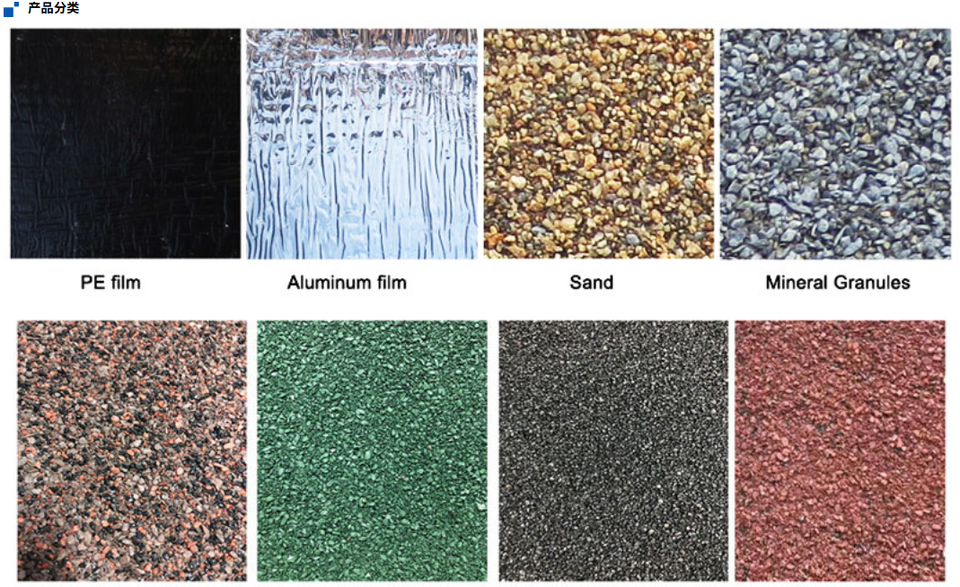 Top surface:PE film, PET film, Sands, Mineral granules