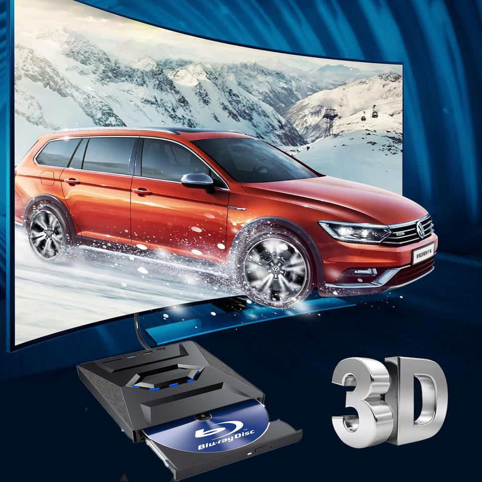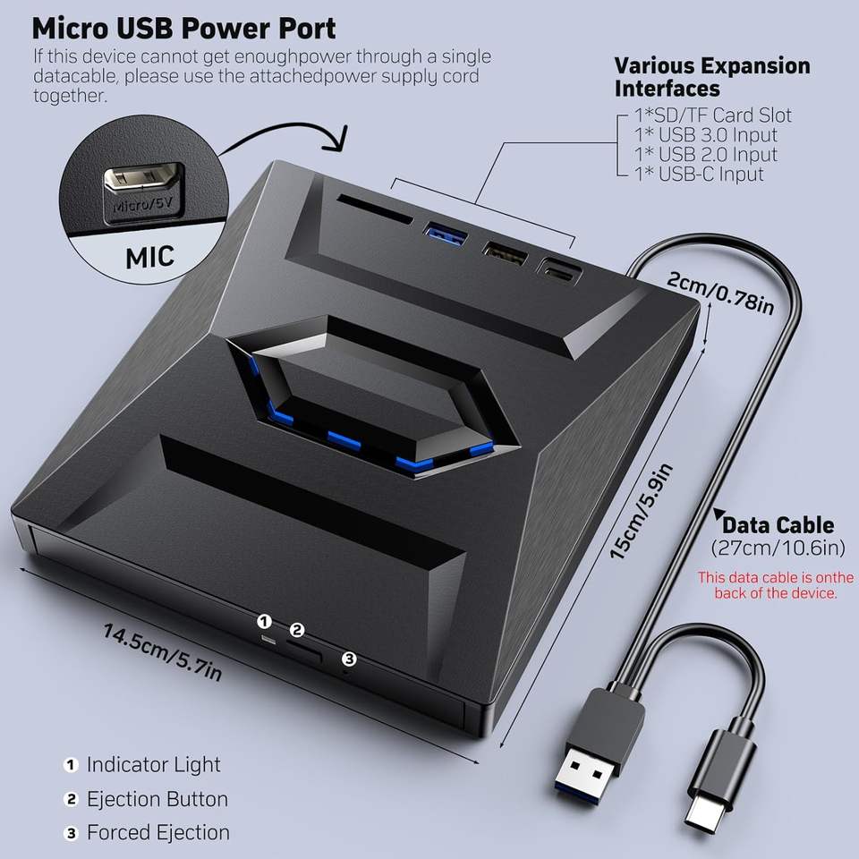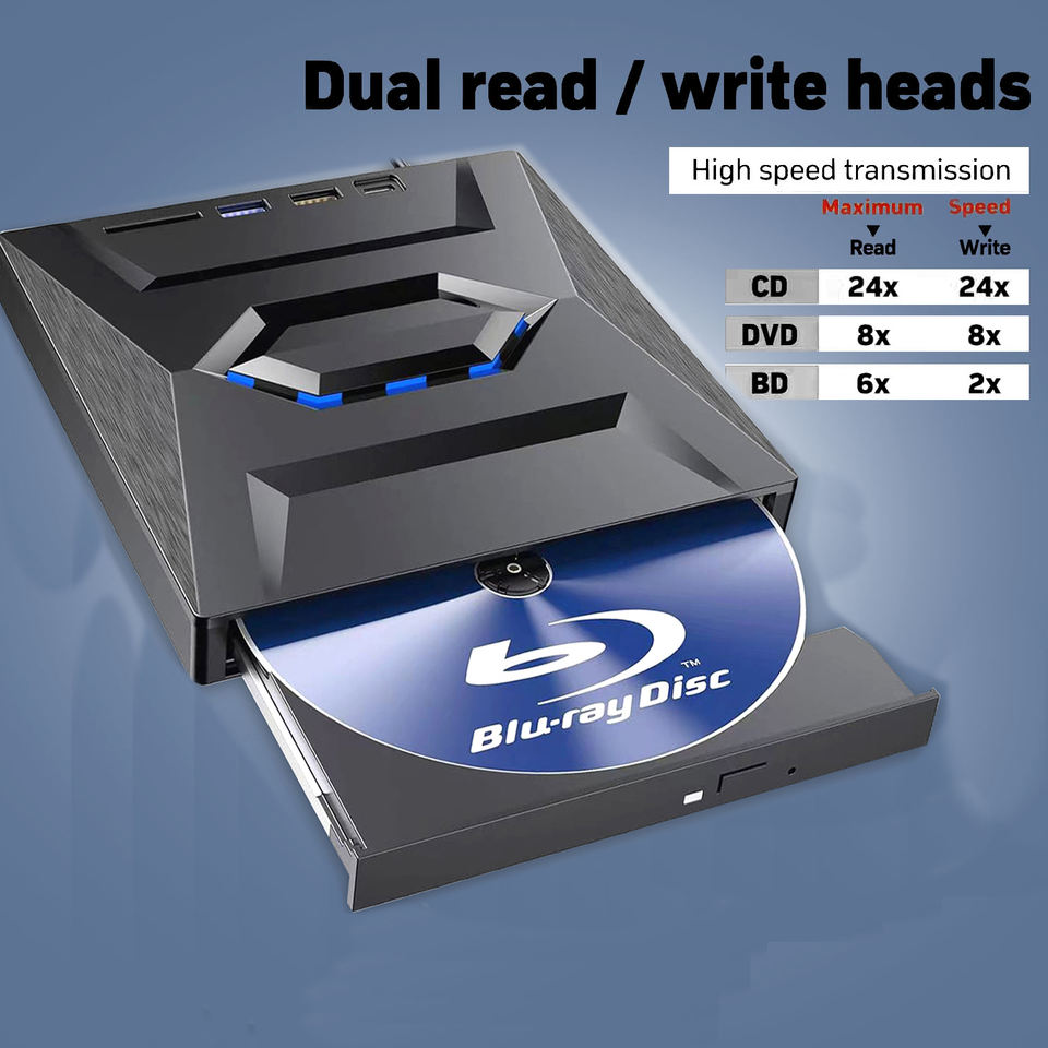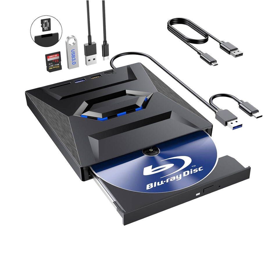 Lecteur/graveur de Blu-ray externe portable, lecteur de Blu-ray, graveur de CD avec port USB 3.0 Type C et carte SD, DVD et CD-ROM +/-RW BD