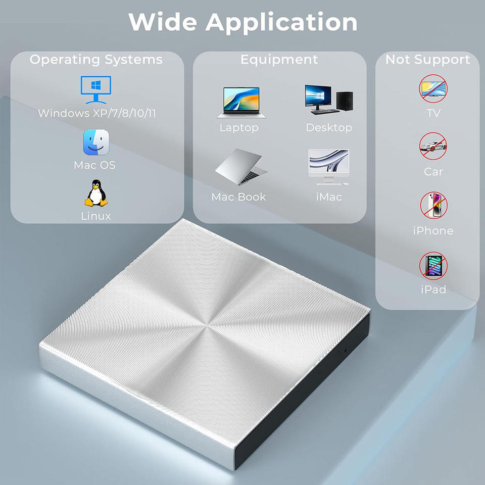 Lecteur optique externe Blu-ray DVD ultra-fin CD DVD -/+RW BD-Combo avec USB 3.0 Lecteur optique portable Graveur Blu-ray