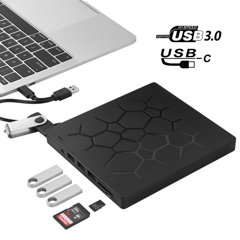 Lecteur de disque optique externe USB 3.0 Type C, avec Ports USB et lecteur SD, graveur de DVD et CD-ROM