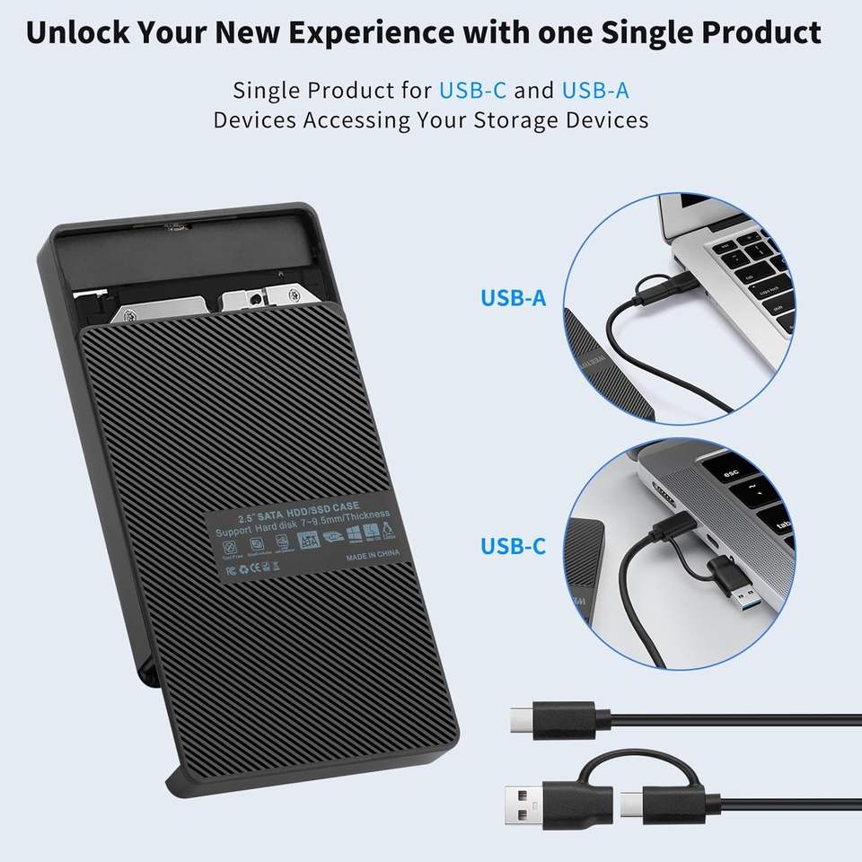 Disque Dur Externe Double Disque USB 3.0 ABS Portable HDD 1 To 2,5 Pouces Double Sécurité pour Ordinateur de Bureau