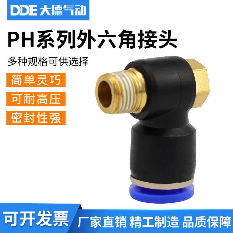 Raccord rapide hexagonal externe PH, raccord rapide pneumatique, raccord fileté pour PH4-6-8-10-12mm-01 02, outils, accessoires, pièces