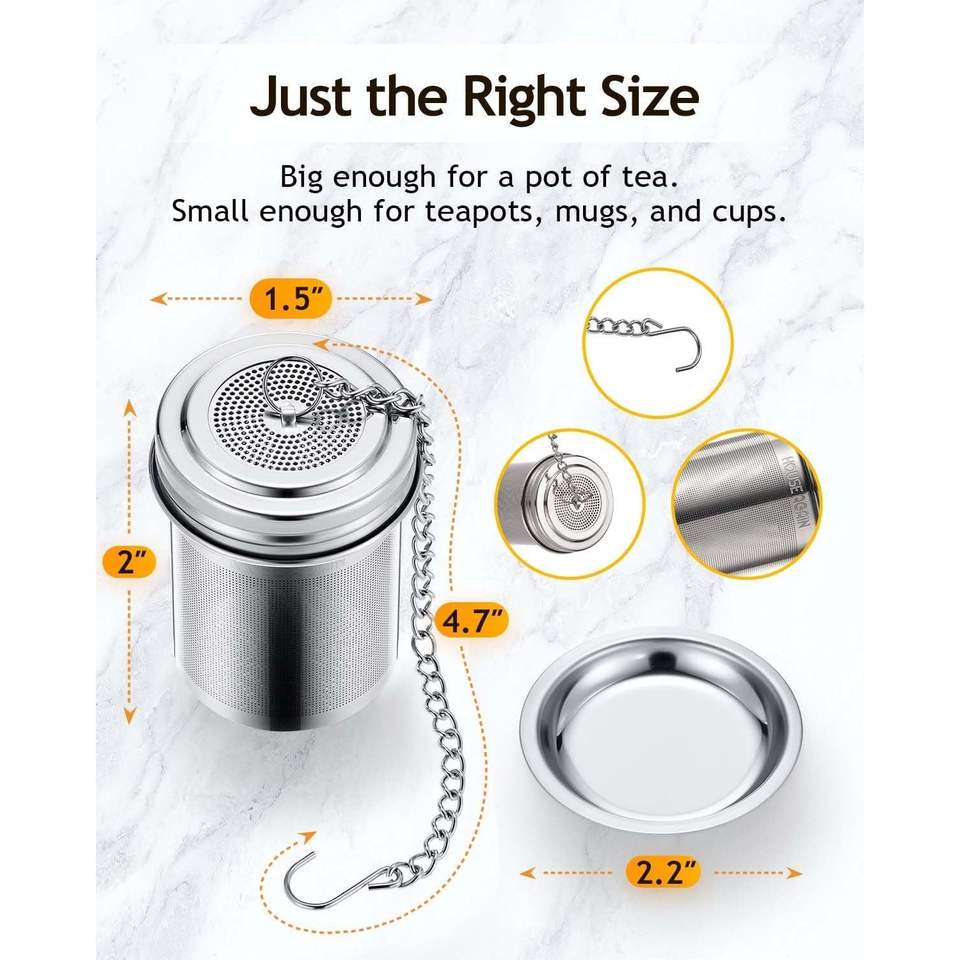Infuseur à thé en acier inoxydable 18/8 à mailles extra fines, lot de 2, avec crochet à chaîne allongé pour thé en vrac