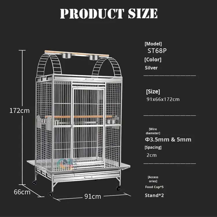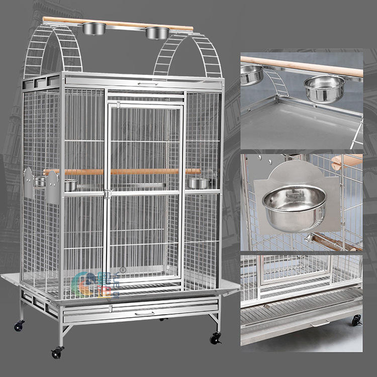 Cage à oiseaux extra large en acier inoxydable 304 pour perroquets, ara, calopsittes, villa grise, volière, cage à oiseaux avec support, cage à ara, volière