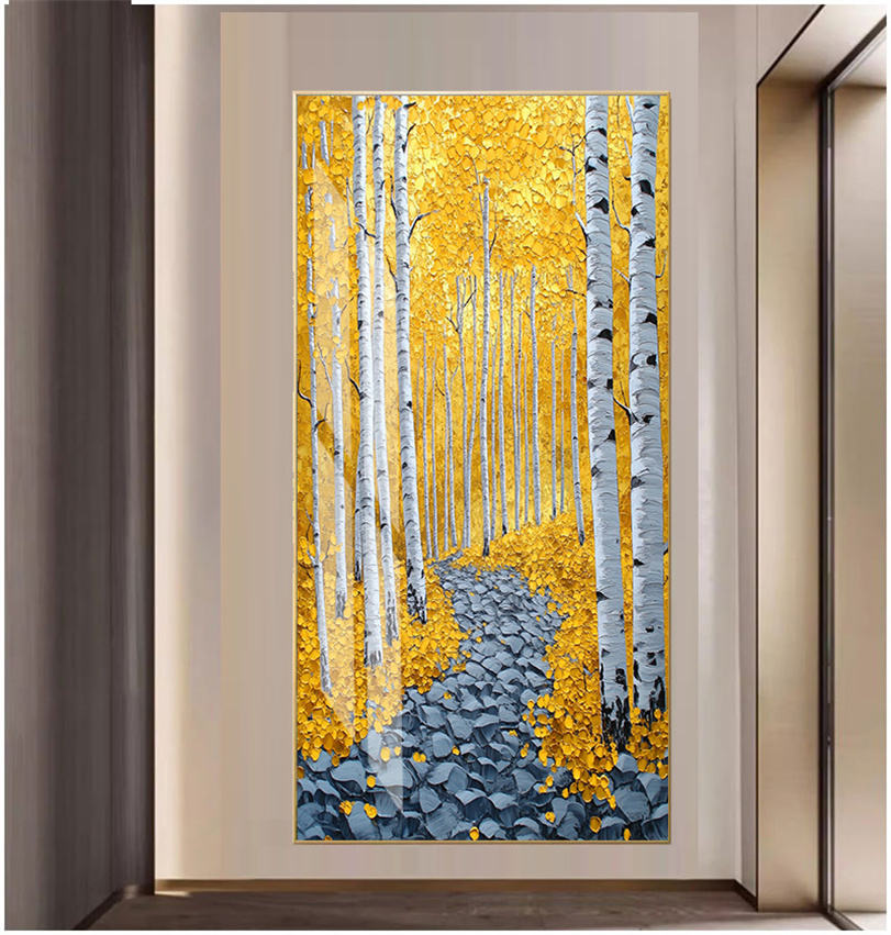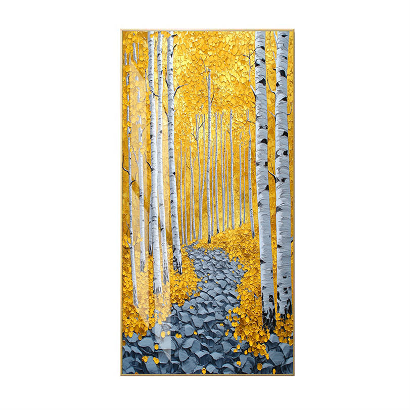 Peinture murale abstraite extra large de la forêt dorée Pièce d'art en porcelaine de cristal pour la décoration du salon