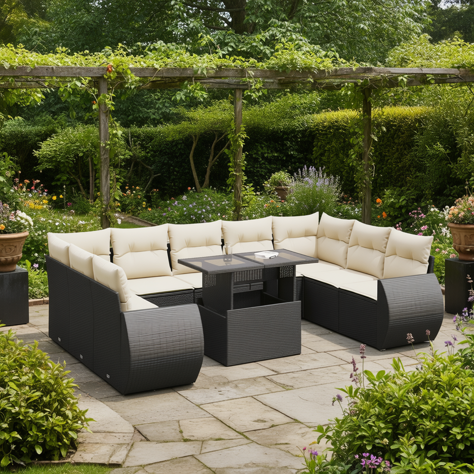 Ensemble de canapés de jardin en rotin noir extra large 6 places, mobilier d'extérieur au design contemporain