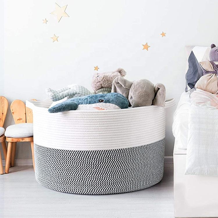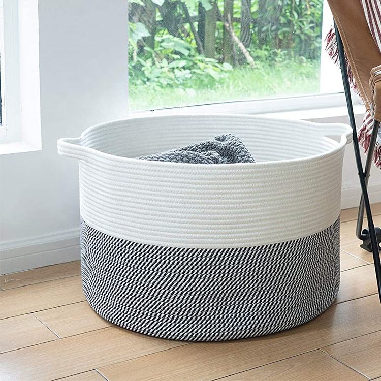 Panier à linge en corde de coton extra large, tissé, pour vêtements sales et couvertures