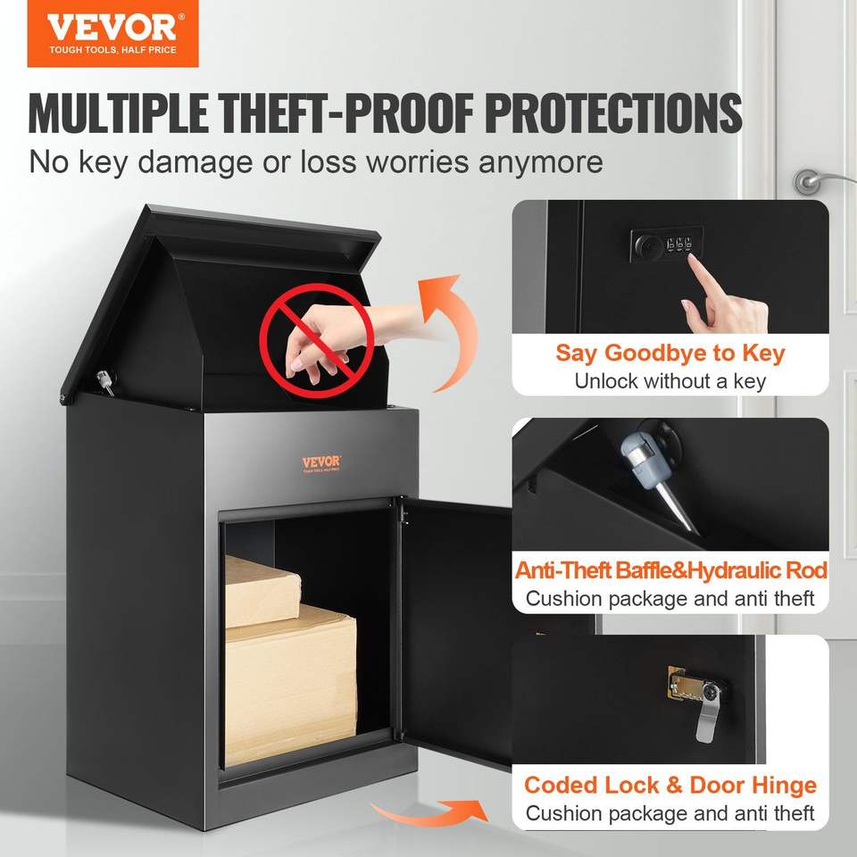 Boîte aux lettres murale extra-large en acier galvanisé avec serrure à code, boîtes de livraison de colis extérieures 17,3"x13,8"x22"